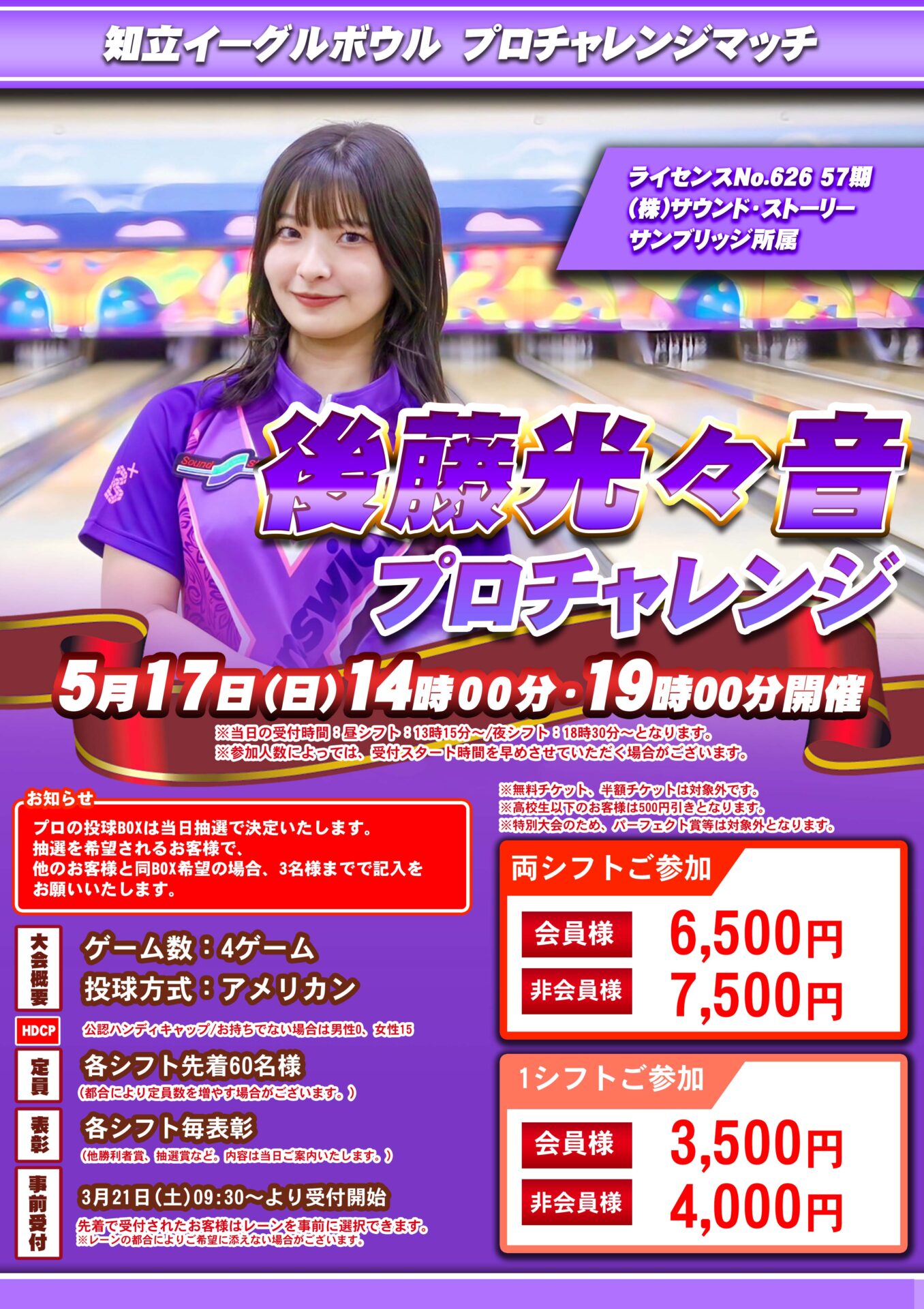 【イーグルボウル】5/17後藤光々音プロチャレンジマッチのお知らせ