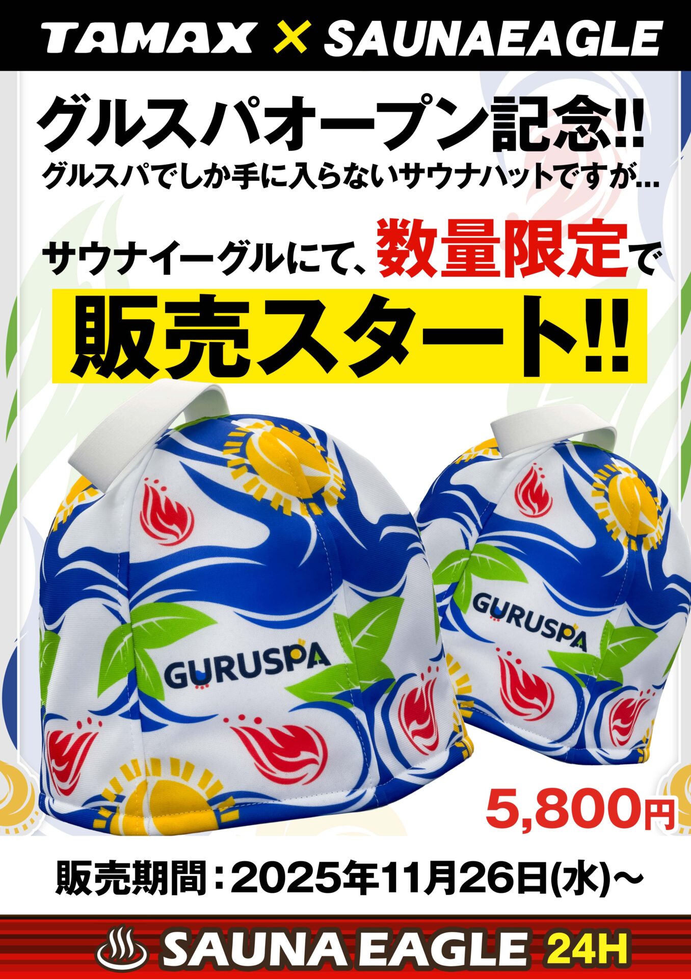 このたび、姉妹店「松阪温泉GURUSPA」で大好評販売中のオリジナルサウナハットを、数量限定でサウナイーグルでもお求めいただけることになりました。
