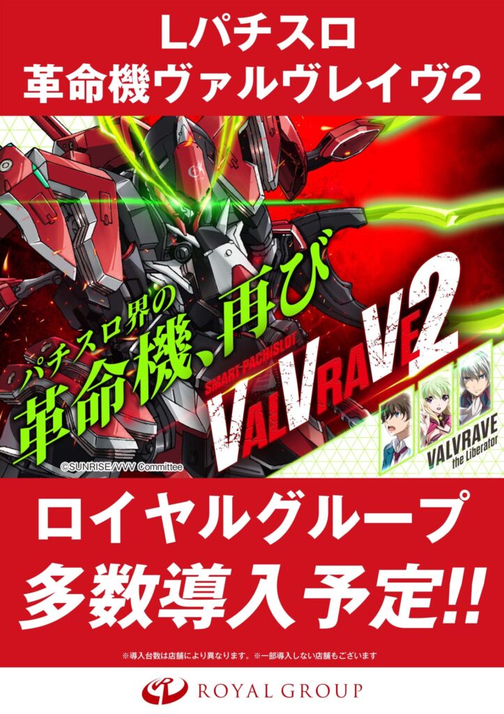 2025年11月、SANKYO様より販売される遊技機「Lパチスロ 革命機ヴァルヴレイヴ2」のロイヤルグループ各店への多数導入を予定しております。