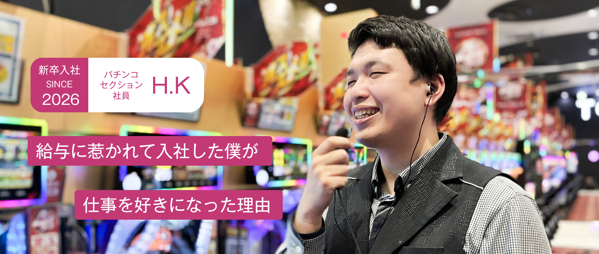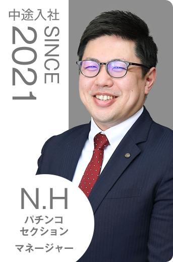 入社後に印象が大きく変わったのは、仕事そのものの面白さです。もともとパチンコ業界には詳しくなかったのですが、実際に遊技台に触れる中で、少しずつ面白さを感じるようになりました。きっかけの一つは、話題になっていた機種を実際に体験したことです。最初は負けて悔しい思いもしましたが、その後の経験を通して、純粋に「楽しい」と思えるようになりました。また、就職活動の際に「将来は企画や販促に関わりたい」と考えていたのですが、入社1年目のうちにその機会をいただけたことも大きな転機でした。上司から声をかけてもらい販促物の作成に挑戦する中で、お客様の反応を直接感じることができ、「自分の仕事が伝わっている」と実感できました。さらに、その過程で上司や先輩が自分たちの業務が終わった後も時間をつくって関わってくれ、成長のために本気で向き合ってくれていると感じました。
