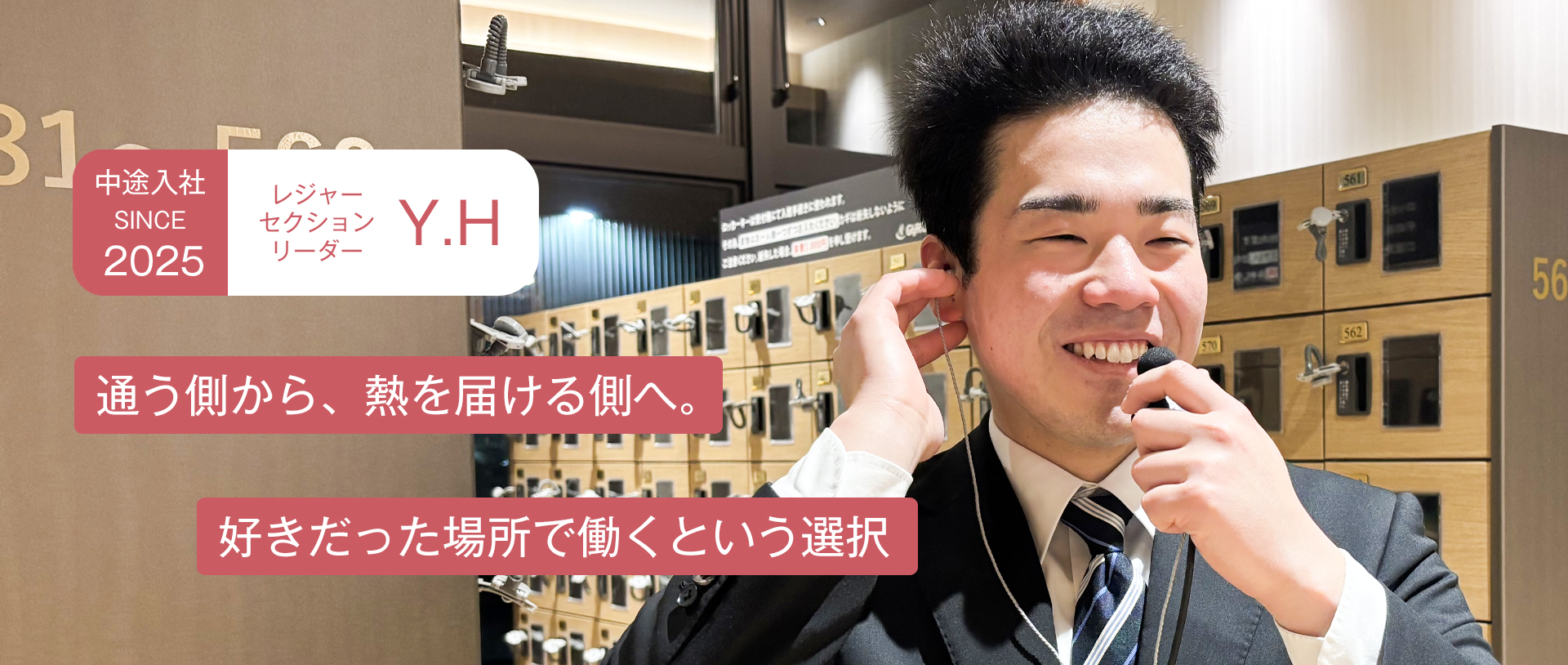 印象に残っているのは、ロウリュを担当したときの経験です。当時、ロウリュができるスタッフは限られており、自分も担当する機会をもらいました。実際にお客様の前に立ち、口上を行い、空間をつくる。その中で、お客様から拍手をいただけたときの感覚は今でも忘れられません。「自分の仕事で、こんなに直接喜んでもらえるんだ」と実感できた瞬間でした。また、名前を覚えてもらえたり、再び来店していただけたときは、大きなやりがいにつながっています。一方で、新しい店舗の立ち上げや役職を任されたタイミングでは、想像以上に難しさも感じました。思うようにいかない場面も多く、自分の力不足を実感することもありました。それでも、周囲のサポートや声掛けに支えられながら、「ここでもう一度やり切ろう」と気持ちを切り替えることができました。今振り返ると、その経験があったからこそ、目の前の仕事により主体的に向き合えるようになったと感じています。