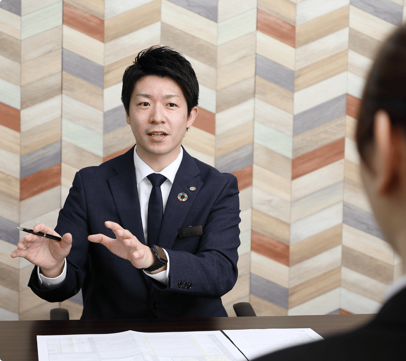 合同説明会で会った社員の皆さんを、格好良いと感じたことがきっかけでした。私は学生時代、行きたい会社も、やりたい仕事もはっきりしないまま、就職活動を始めました。しかも漫然と、「仕事は楽しくない」というイメージだけは持っていた。でも、合同説明会で声をかけてもらった時、ここの社員さんから、「社会人としての格好良さ」を感じ取ったんですよね。キラキラしていて、「この人たちと仕事がしてみたい、この人たちみたいになりたいな」と。その気持ちを、あの会場の景色と一緒に覚えています。