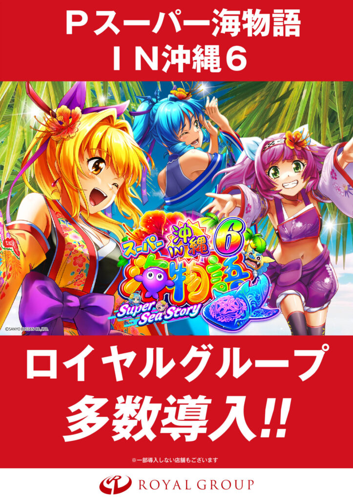2025年10月、SANYO様より販売される遊技機「Pスーパー海物語IN沖縄6」のロイヤルグループ各店への多数導入が決定いたしました。