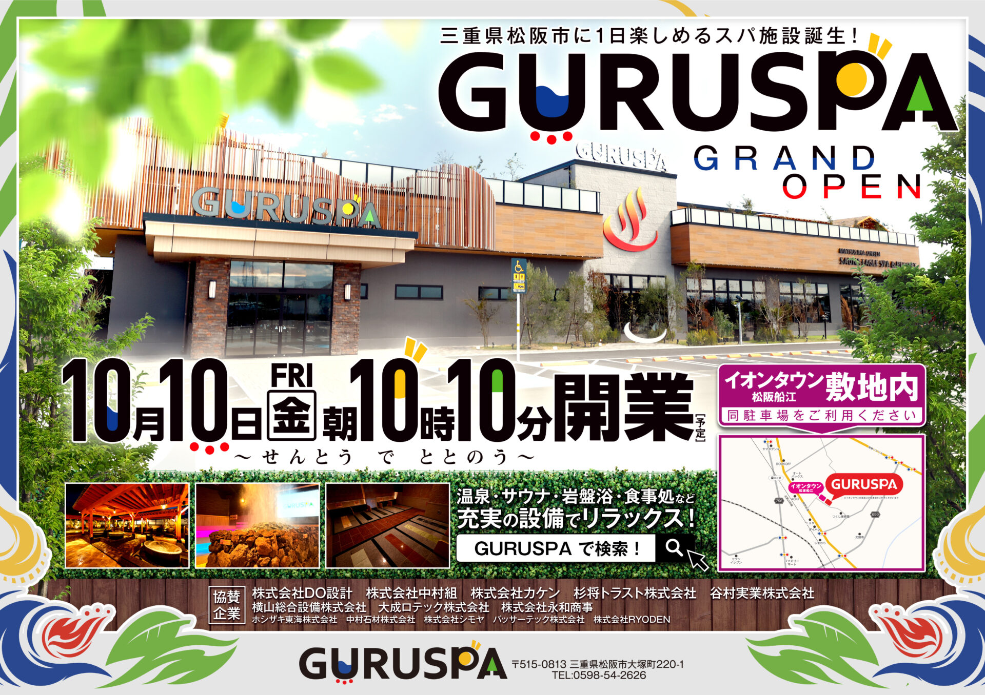 10/10(金)、松阪温泉GURUSPAが三重県松阪市にグランドオープンいたしました。