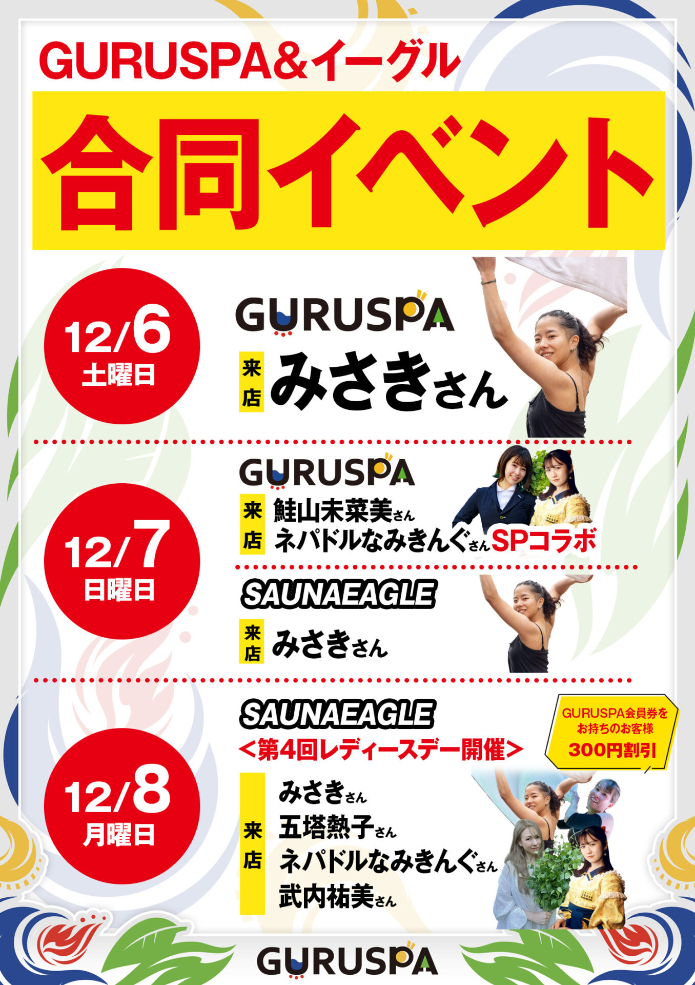 【12/6・7・8】GURUSPA × サウナイーグル 合同イベント開催!